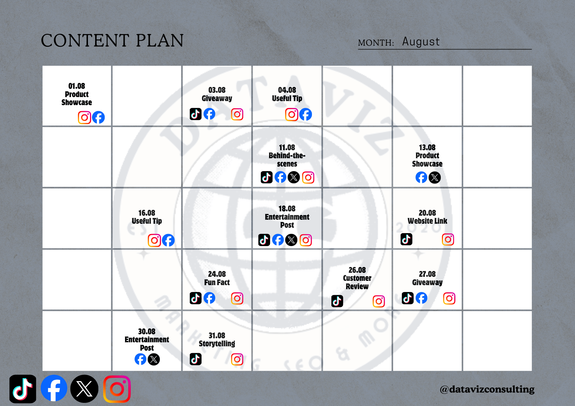A content calendar is a tool used to plan and organize social media posts in advance. It helps you maintain a consistent posting schedule, align content with marketing goals, and integrate various campaigns and promotions seamlessly. An effective content calendar ensures that social media activity is purposeful, timely, and engaging. There are tons of free resources for content calendars, including Google Sheets and even templates online. We even created one for you to get started! You can click the download button below to get your own.