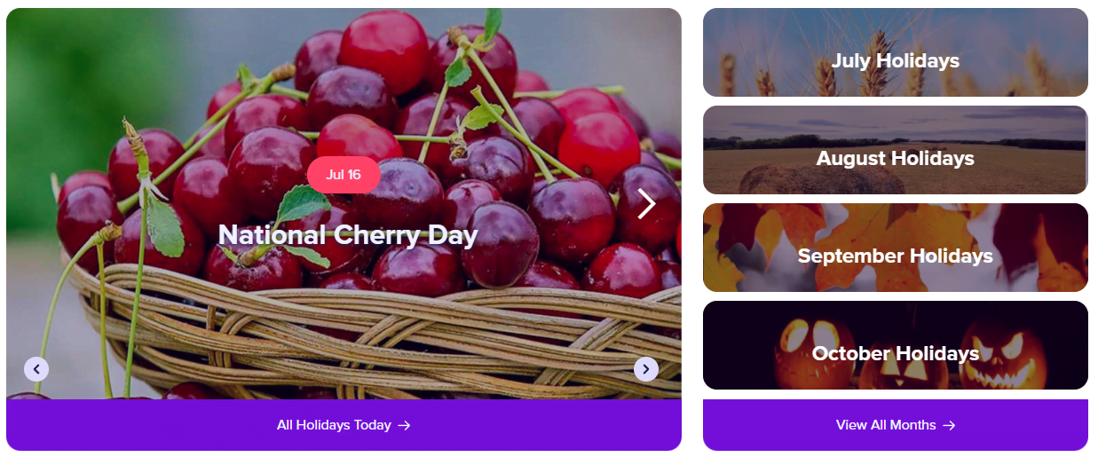 Before deciding on what you want to post, determine what days you will be posting. Consulting a holiday calendar like HolidayCalendar.io will allow you to create some great seasonal and relevant content for your audience, allowing you to connect more easily with them. Consider what dates are more likely to garner the attention you want for your business, such as sports gamedays, national holidays, or buying seasons (like Black Friday). As a general rule of thumb, most marketing experts recommend posting on Mondays, Wednesdays, and Fridays.